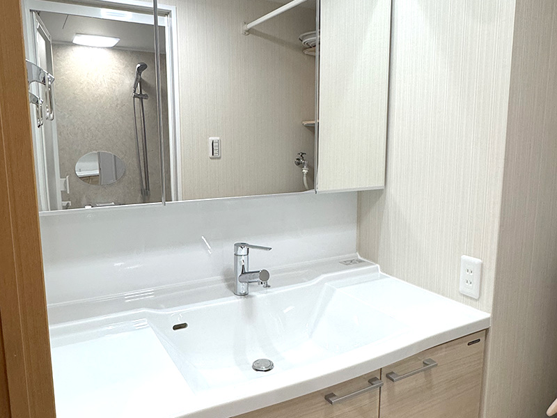 オーダーの洗面化粧台をご選定いただいたことで、無駄なスペースを作ることなく、すっきりとした仕上がりとなり、喜んでいただけましたことを私自身も大変嬉しく思っております。
